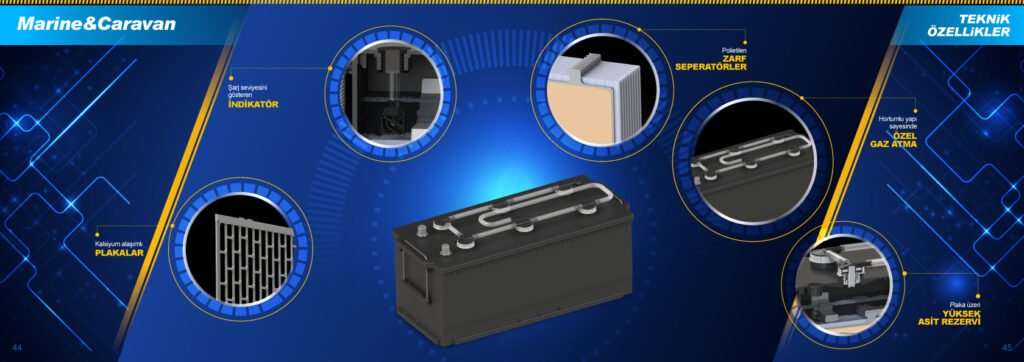 İnci Akü’nün tekneler ve karavanlar için özel olarak tasarladığı Marine&Caravan serisi, güçlendirilmiş plakaları sayesinde yüksek marş basma gücü ile maksimum performans sağlar. Şoka ve sarsıntıya karşı ekstra dayanım gösteren Marine&Caravan serisi aküler özel tasarımı ile minimum su kaybı avantajı sağlarlar.